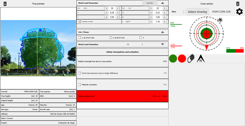 Cuando las inspecciones visuales no son concluyentes en la evaluación del riesgo del ejemplar y necesitamos más información para determinar la probabilidad de fallo de un árbol, nos apoyaremos en un análisis instrumental mediante dos tipos de instrumentación y en el uso de diferentes tipos software especializado,  que nos permitirán determinar la capacidad de resistencia mecánica teórica de la zona del árbol que estamos evaluando.
