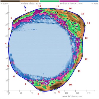 Permite detectar cavidades, pudriciones o defectos estructurales no visibles externamente y que son necesarios determinar para valorar la capacidad estructural del árbol.